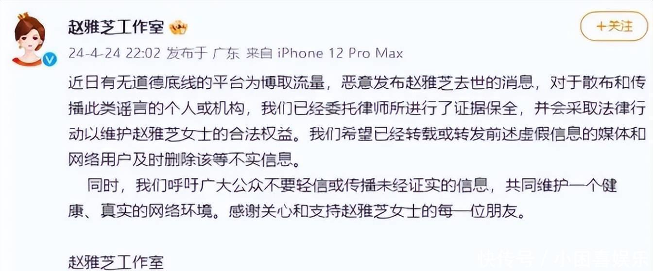 称这一切都是假话,是不良媒体东说念主在蹭赵雅芝女士的热度