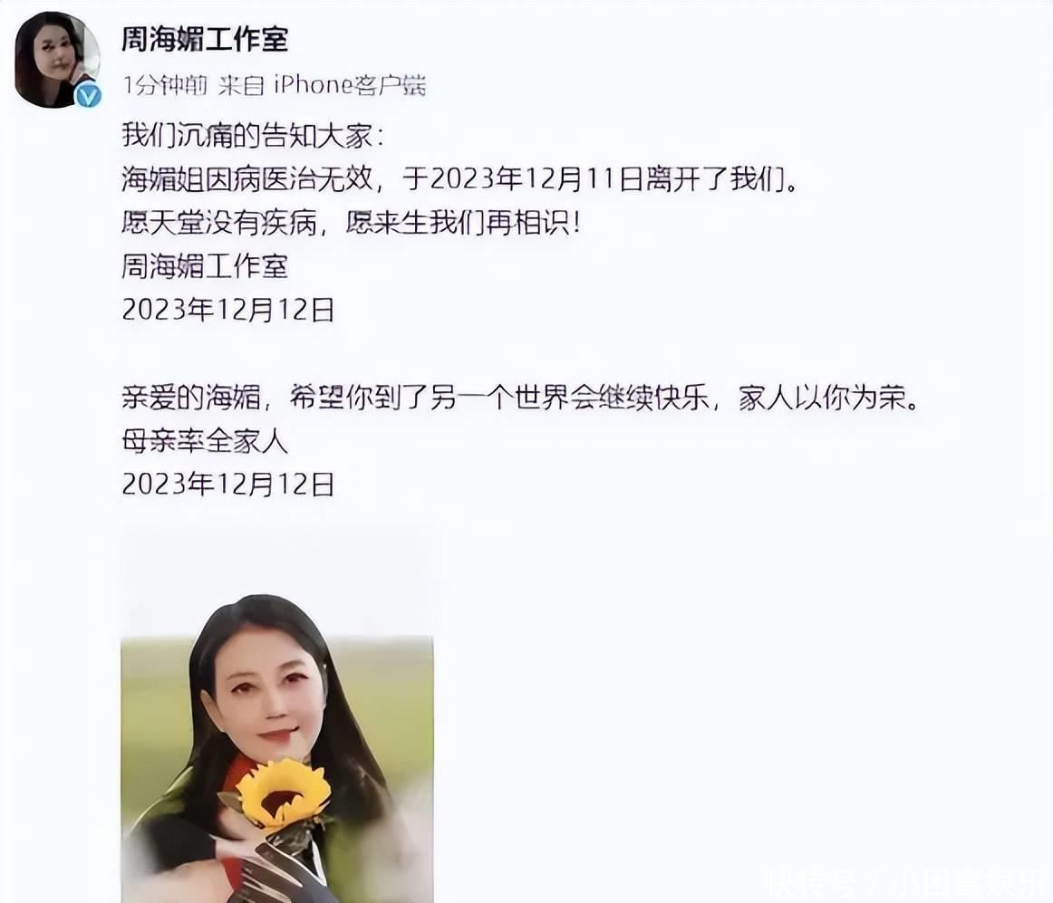 2023年,驰名演员周海媚离世一事就闹出过“不有数笑”